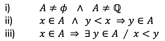 El subconjunto A ⊂ Q es una cortadura si y sólo si verifica