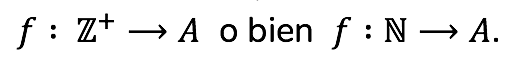 Una sucesión es una función o aplicación, cuyo dominio es el conjunto de los enteros positivos o bien el conjunto de los números naturales y su codominio es cualquier conjunto.