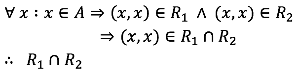 Primero se debe asegurar que R1 ∩ R2 ≠ ∅, esto es cierto porque R1 y R2 son relaciones reflexivas.
