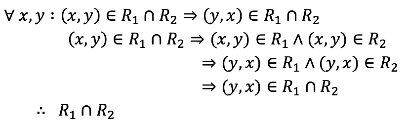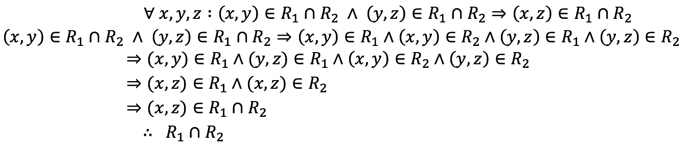 De este modo se demuestra que R1 ∩ R2 es una relación de equivalencia, es decir, R1 ∩ R2 ∈ Eq .