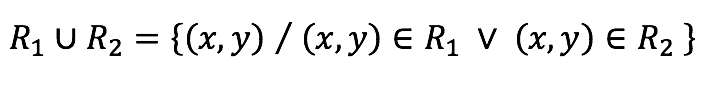 Si R1 y R2 son relaciones de equivalencia, entonces R1 ∪ R2 es una relación reflexiva y simétrica porque ∆A ⊂ R1 ∪ R2 y (R1 ∪ R2 )-1 = R1-1 ∪ R21 ⊂ R1 ∪ R2 . En el ejemplo se determinó que en general R1 ∪ R2 no es una relación de equivalencia porque falla la transitividad. Necesitando de la siguiente propiedad.