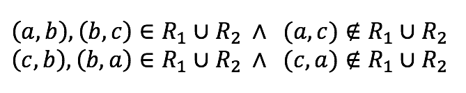 concluyendo que R1 ∪ R2 no es una relación de equivalencia.
