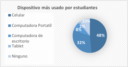 En la figura 2 se evidencian que los dispositivos más usados por los docentes (42%) son las computadoras portátiles. En cambio, los estudiantes prefieren el teléfono celular (48%). Las herramientas de IA han sido adaptadas para funcionar en dispositivos móviles debido a la versatilidad del avance de la tecnología, además de su fácil manejo, puesto que se puede acceder en cualquier momento y lugar, siempre y cuando se tengan conexión a internet.
