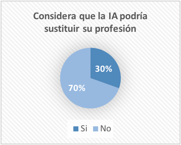 Por otro lado, un 14% muestra preocupación al afirmar que la IA puede sustituir a los humanos: “La IA crea desempleo, con el paso del tiempo y la evolución de la IA, es probable que se cambie la forma de trabajar y será como ser sustituidos por máquinas”; “muchas profesiones están siendo sustituidas por la IA, por ejemplo, la de los traductores, profesores de inglés, estadistas, etc.” Por consiguiente, tanto docentes como estudiantes consideran que la IA crea dependencia, adicción y pereza mental en la realización de actividades o tareas académicas. En cuanto a lo laboral consideran resaltaron negativamente porque podría sustituir a los humanos en tareas cotidianas como cálculos matemáticos, estadísticos, operadores, en otros.