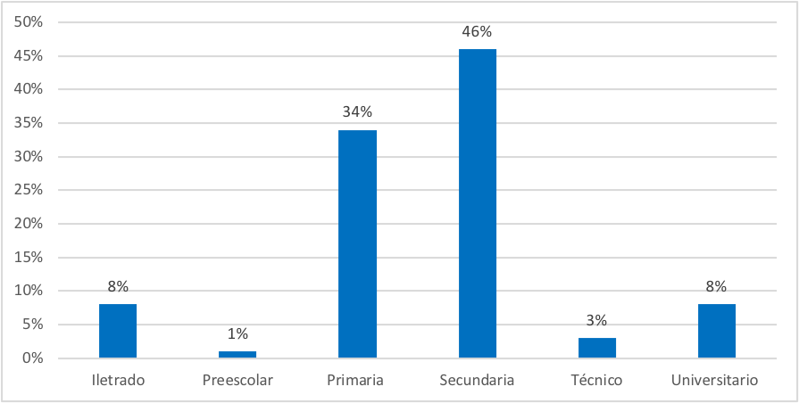 Figura 6. Escolaridad de casos positivos a SARS-CoV-2, distrito II, Managua, Nicaragua; abril 2021 a marzo 2022.
