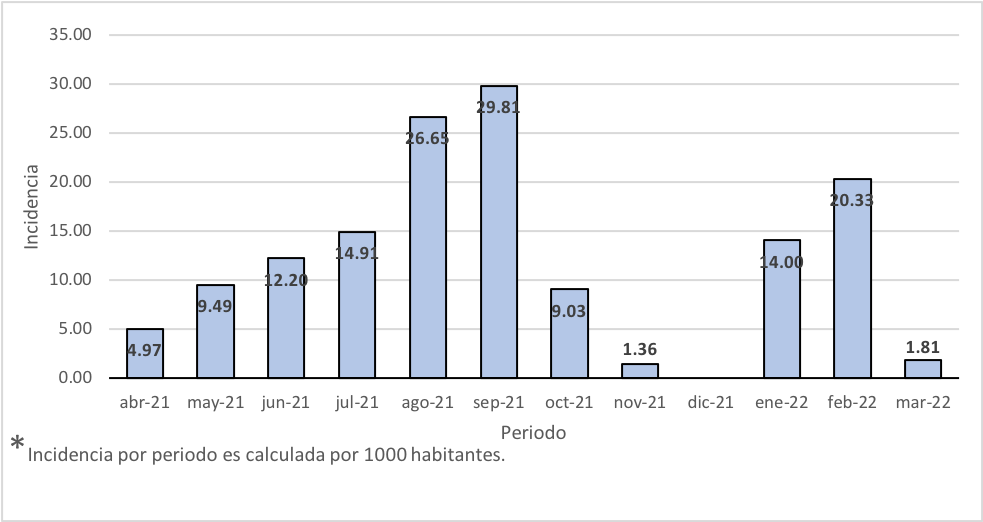 Figura 2. Incidencia de SARS-CoV-2 en el periodo de abril 2021 a marzo 2022.