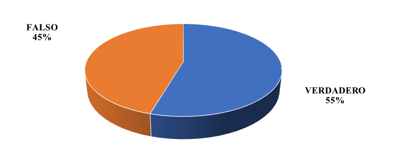 La primera pregunta a los estudiantes (figura 1) tenía como objetivo determinar si conocen cómo La Primera Ley de la Termodinámica describe sistemas de energía donde el trabajo y el calor actúan en los cambios de energía, se les proporcionó las opciones de falso y verdadero para que eligieran la opción que ellos consideraran correcta, los resultados se presentan a continuación: