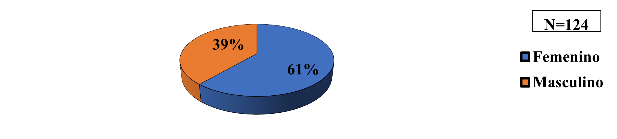 Se observan los datos obtenidos de la guía de encuesta del género de los pacientes que acuden a la unidad odontológica especializada que participaron en el estudio, en donde el 61% (76) de los pacientes encuestados son de género femenino y el 39% (48) de las personas entrevistadas son del género masculino.