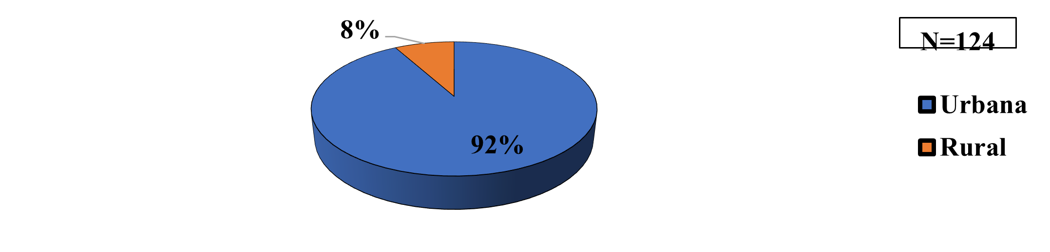 La figura 3 tiene como resultado que un 92% (114) de los pacientes encuestados es de procedencia urbana y un 8% (10) son de procedencia rural. Esto resulta, probablemente por cercanía que puedan tener los pacientes con la unidad especializada odontológica.
