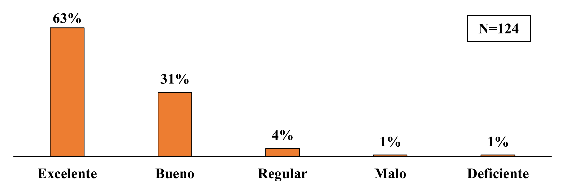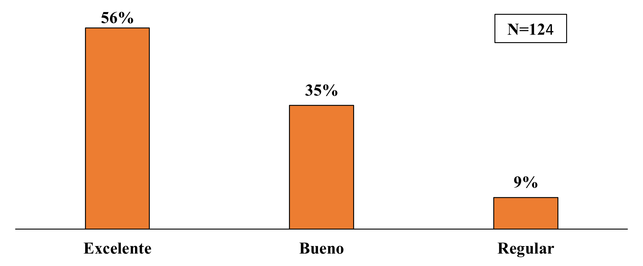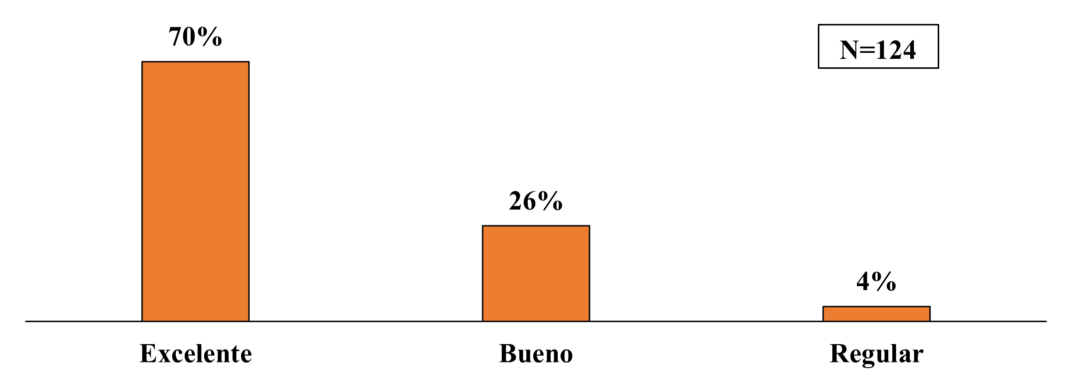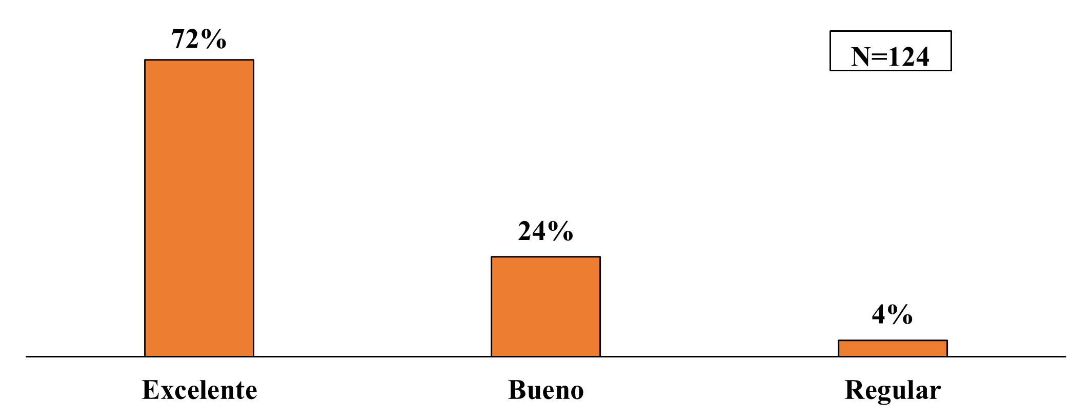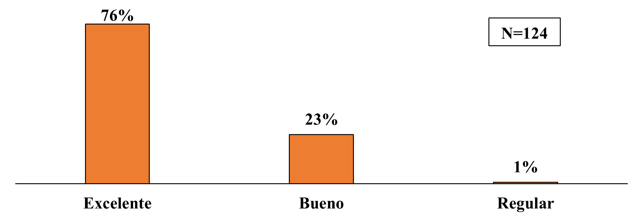 Por otro lado, se encontró en un estudio con resultados parecidos a este y realizado por González, Cruz y Zambrano (2019) que “El trato recibido fue valorado por el 78.6%, expresaron que es muy buena” (p.34). Al compáralo con este estudio se observó que un 83% (103) de los encuestados refirió que la atención fue excelente, por lo que los datos son parecidos.