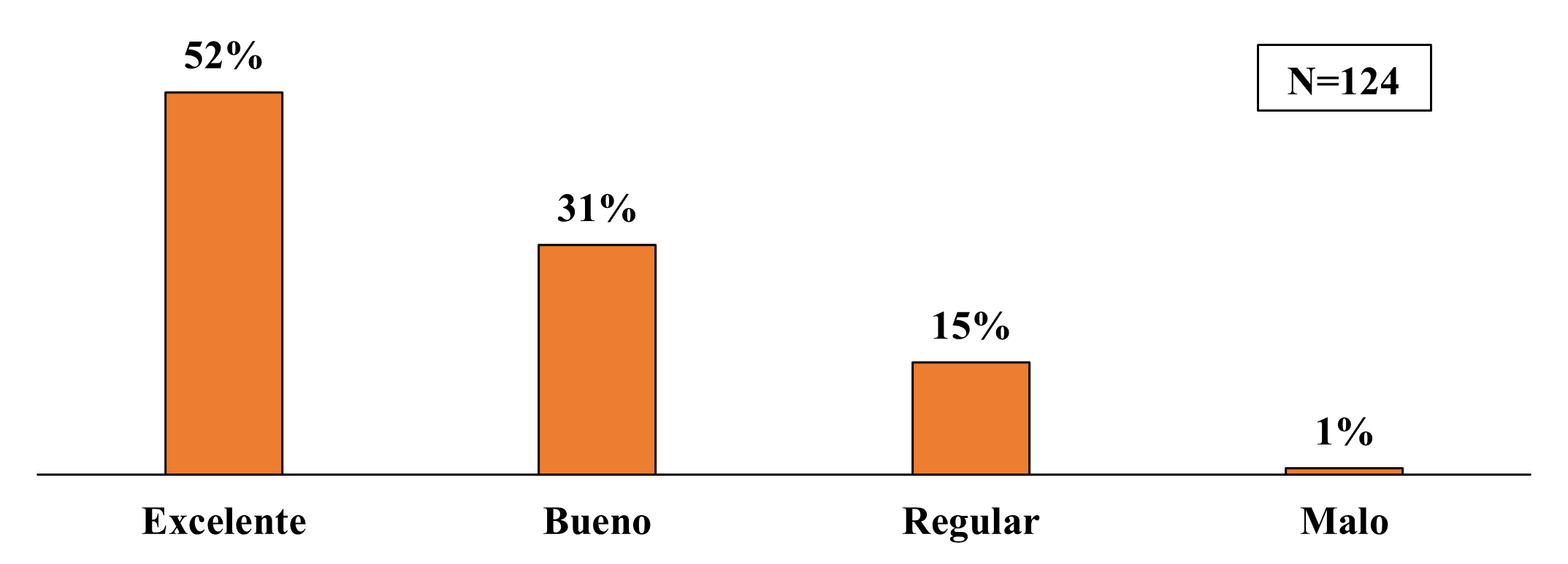 En la figura anterior se refleja cómo fue la atención que recibieron en la consulta. Un 83% (103) de los encuestados refirió que la atención fue excelente por parte de los colaboradores de la unidad odontológica especializada y un 17% (21) refirió que la atención fue buena por parte de los colaboradores de la unidad odontológica.