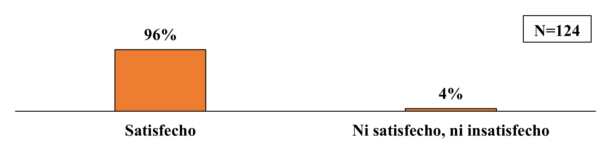 En la figura 16, se observan los datos referidos de los pacientes que acuden a la unidad odontológica especializada la satisfacción del usuario, un 96% (119) de los pacientes refirió que están satisfechos por la atención recibida en la unidad y un 4% (5) de los pacientes refieren que no están satisfechos, ni insatisfechos con la atención recibida.
