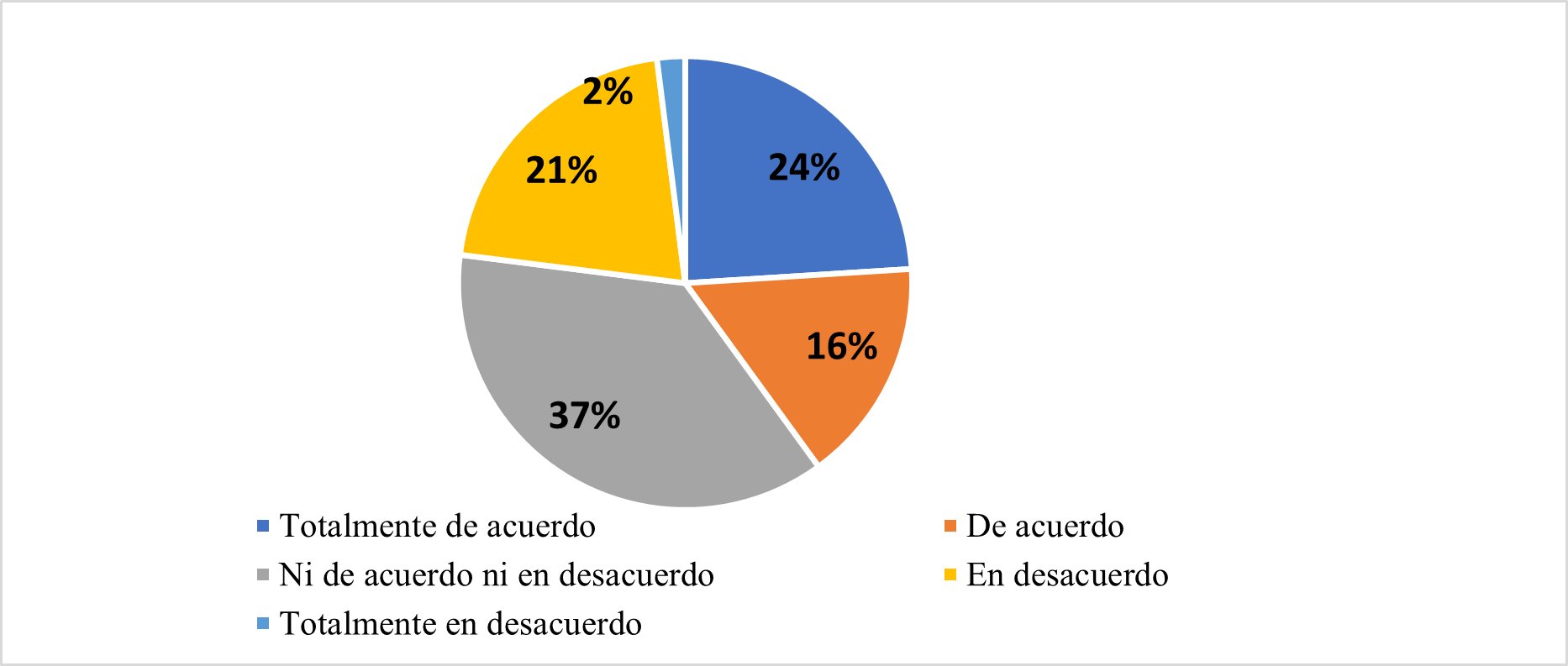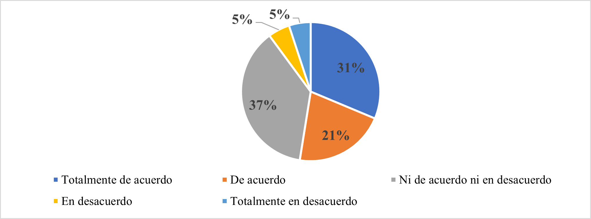 La motivación entre los estudiantes es mayormente positiva, pero hay un segmento considerable (37%) que está en una postura neutral, lo que podría representar una oportunidad para mejorar su motivación mediante intervenciones o estrategias pedagógicas que generen mayor compromiso y entusiasmo