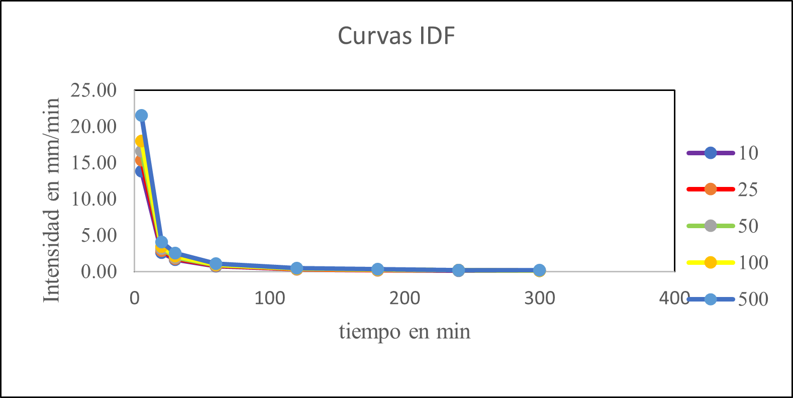 Figura 3. Curvas IDF para distintos periodos de retorno