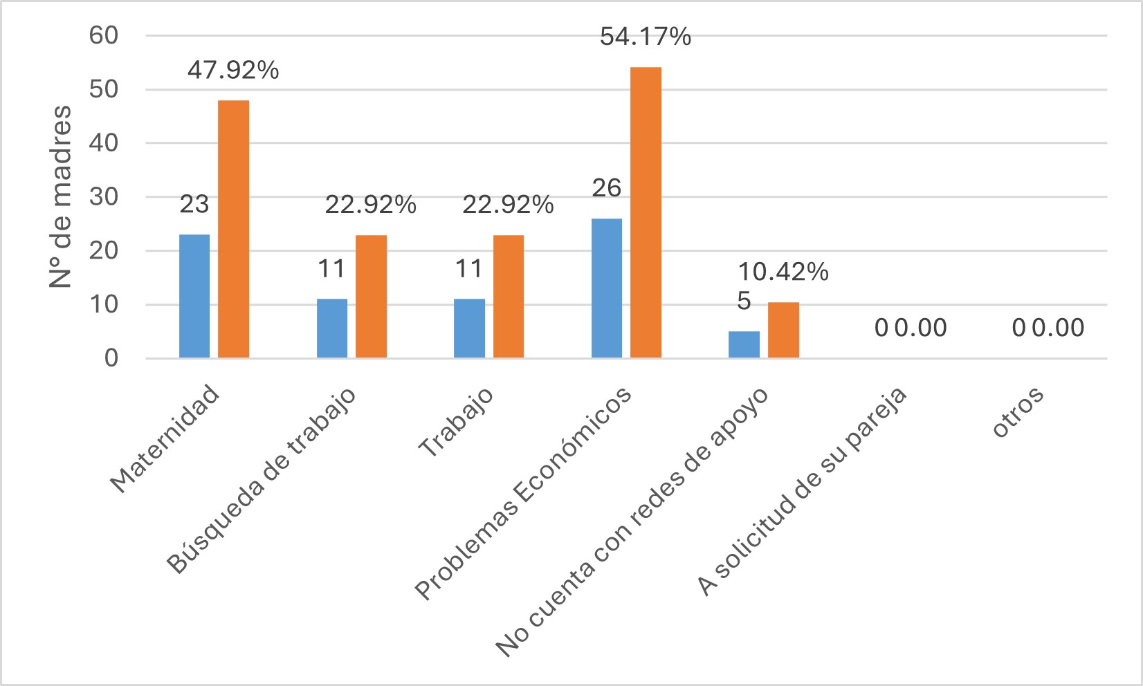 Los datos indican que los problemas económicos son el principal motivo de abandono o postergación, seguidos por la propia maternidad. Sin embargo, detrás de estas respuestas se evidencian factores estructurales más amplios, como la falta de corresponsabilidad parental, la escasez de servicios como guarderías, y la presión constante por responder a todos los frentes sin acompañamiento.