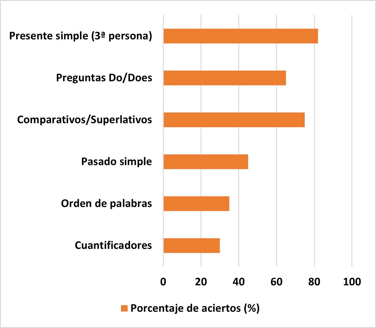 Los resultados mostraron avances parciales en el reconocimiento de las estructuras gramaticales. Sí se evidencia cierta mejora en la comprensión de las reglas, las limitaciones en la producción oral y escrita muestran que la aplicación de dichas metodologías no ha sido constante ni suficiente para lograr un dominio integral. Viendo así, la hipótesis parcialmente que se cumple en términos pedagógicos.