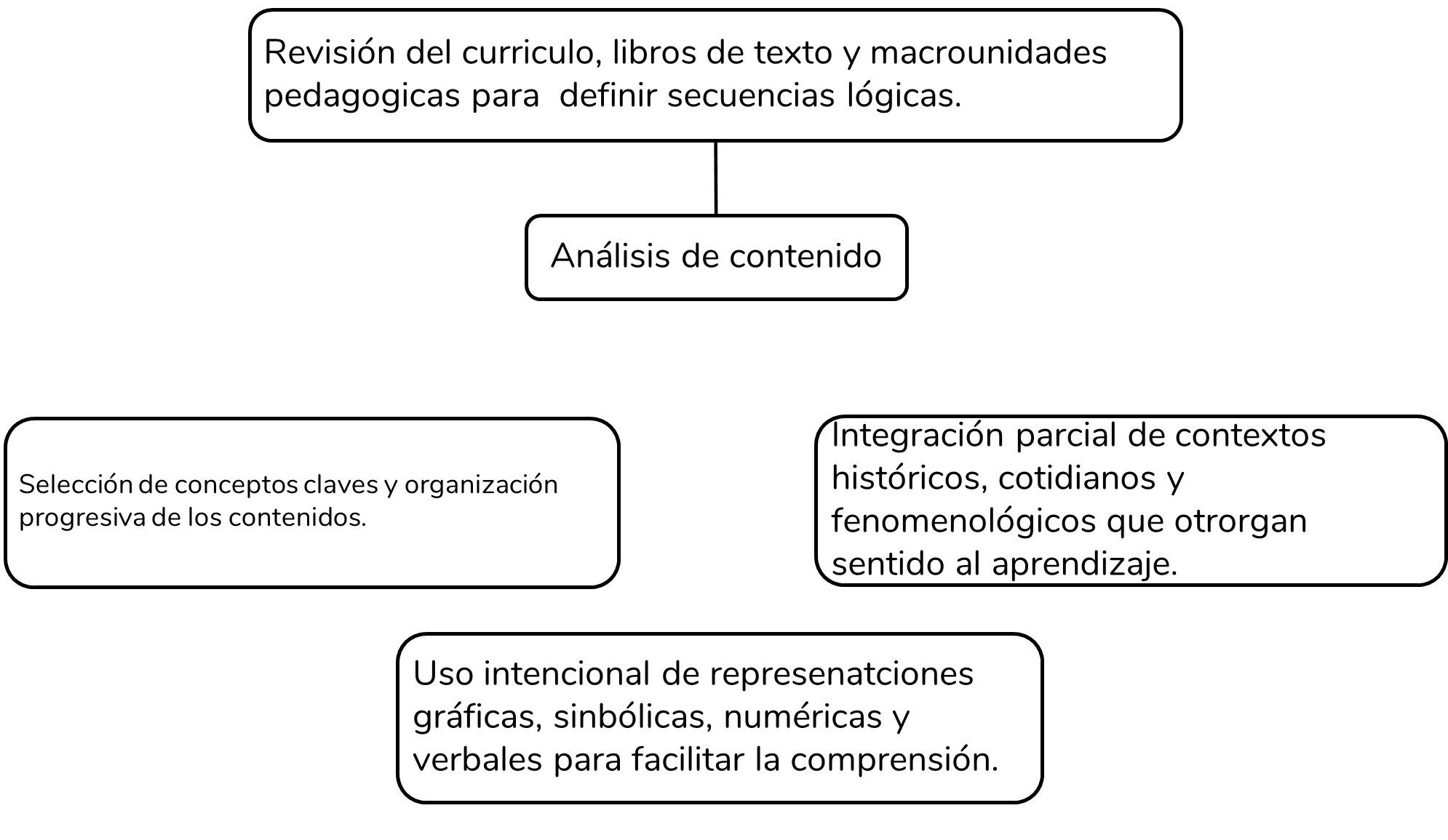 Este ejercicio de análisis curricular y documental les permitió reconstruir la secuencia de los contenidos desde una mirada pedagógica, buscando transitar de lo más simple a lo más complejo y garantizar la continuidad y profundidad del aprendizaje. La construcción de los contenidos se apoyó en el análisis conceptual: