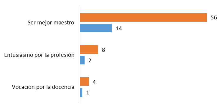 En el grupo focal el docente del Colegio Esquipulas afirmó que “la asignatura ha incidido en mi quehacer como docente, porque he aprendido a ser maestro innovador, atender individualmente a cada estudiante”. Al respecto la docente del Colegio Camilo Zapata manifestó “he aprendido no solo en la asignatura Didáctica de las Ciencias Sociales, también aprendí de los docentes de la universidad, quienes me han enseñado a aplicar un enfoque participativo, esto me ha motivado a ser diferente con mis estudiantes, ya que los maestros no nos imparten las clases como el que lo sabe todo."