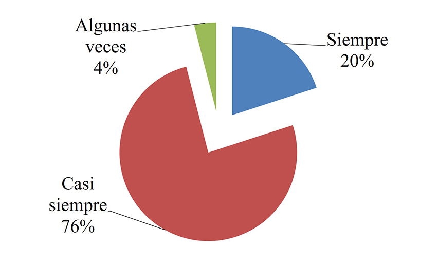 En la encuesta aplicada a los estudiantes de secundaria de los seis colegios e institutos en que se realizó el estudio, el 76% de los estudiantes expresó que casi siempre se sienten motivados por estudiar los contenidos de Geografía e Historia.