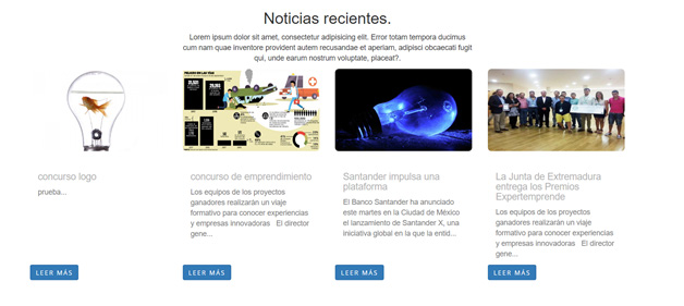 Por debajo de estos se encuentra las noticias recientes (Ver Fig. 4) y como último apartado se muestra el pie de página de la plataforma web, en este espacio se encuentra información básica sobre la plataforma, enlaces a redes sociales y a los demás módulos del CIIEMP (Ver Fig. 5) y él acerca de nosotros, que también se encuentra en el encabezado.