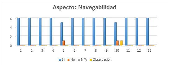 Ilustración Nº 3. Gráfica sobre valoración de aspecto de navegación de la aplicación.