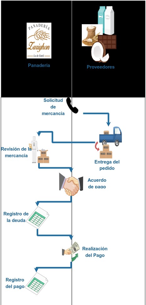 Al momento de realizar un pago al proveedor, este se registra con un número de cheque y el banco al que pertenece. La administración de la panadería se encarga de actualizar sus registros de deudas.