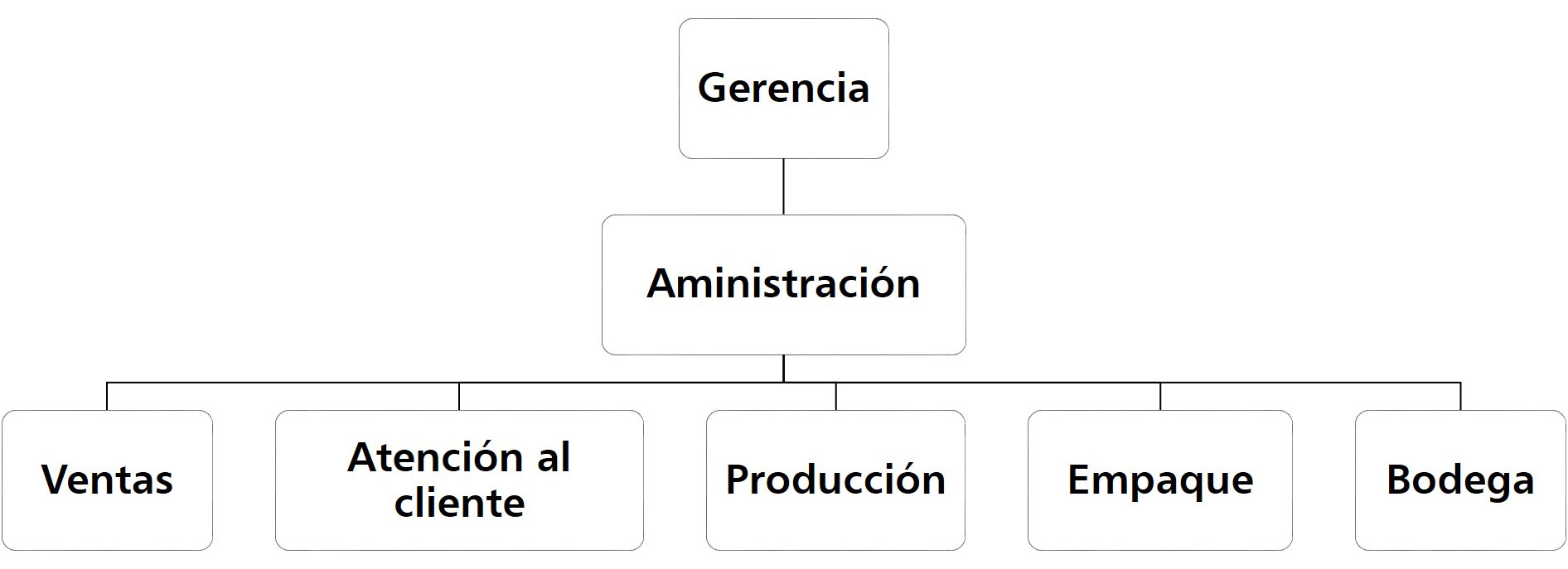 La panadería dispone de 70 trabajadores distribuidos en las áreas de bodega, producción, empaque, ventas, atención al cliente y administración. A continuación, se detallan cada una de estas con sus principales funciones: