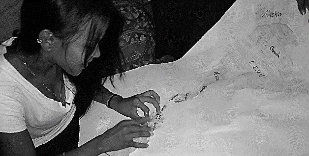 Figura 1. Estudiante de 8vo grado armando rompecabezas del mapa político de América