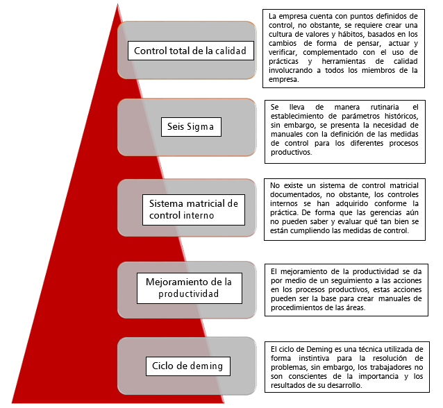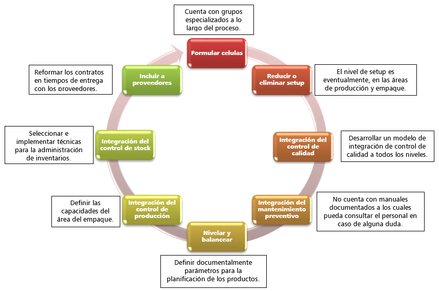 A través un cambio de cultura basado en el control total de la calidad, más el desarrollo total de las técnicas de manufactura esbelta y acompañado de la definición de manuales y procedimiento de control interno, crean una combinación para el análisis de los elementos requeridos que componen el Sistema Integrado de Manufactura, actualmente se detallan de la siguiente manera: