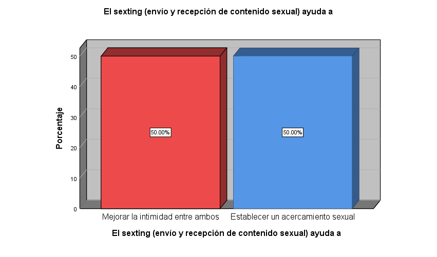 En el gráfico No.1, el 50% de jóvenes creen que el envío y recepción de contenido sexual mejora la intimidad entre ambos, y otro 50% dice que establece un acercamiento sexual.