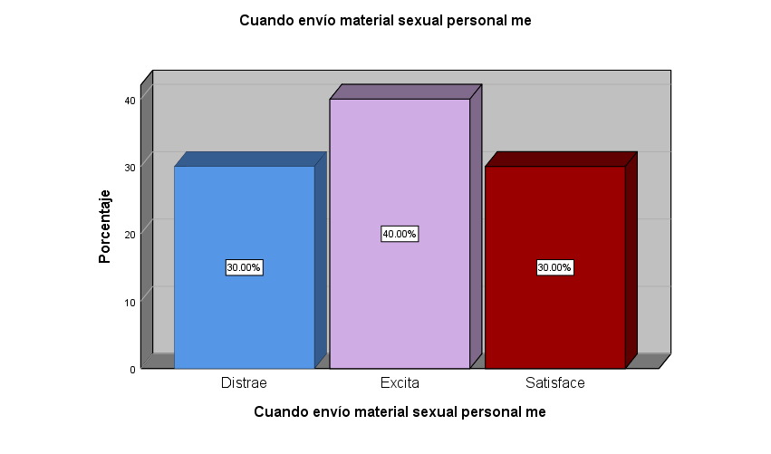 En el Grafico No.3 se refleja que un (40%) de los jóvenes cuando envían material sexual personal se excitan, un (30%) se distrae y el otro (30%) se satisface.