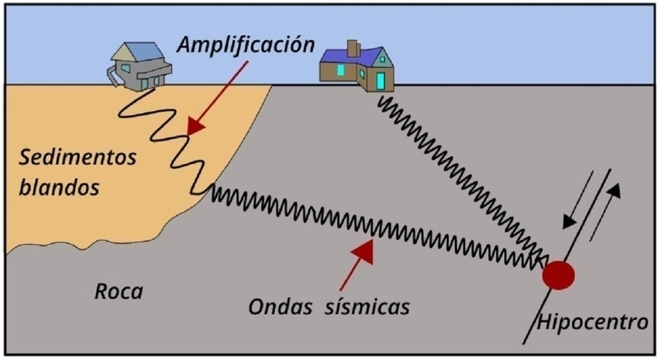 Los suelos blandos se registran amplitudes sísmicas más altas que sobre roca, debido que en las capas superficiales las ondas sísmicas sufren cambios muy significativos, esto porque que el subsuelo se presenta como un depósito de estratos con diferentes propiedades mecánicas y dinámicas cuya base es la formación rocosa (Figura 2).
