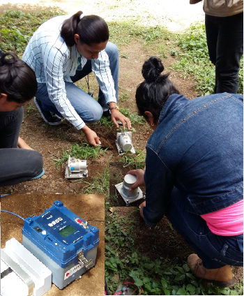 Figura 4. Equipo de Medición acelerómetro digital McSEIS-MT-NEO y sensores sísmicos empleados para registros de vibraciones del suelo en el área del Recinto Universitario Rubén Darío de la UNAN-Managua