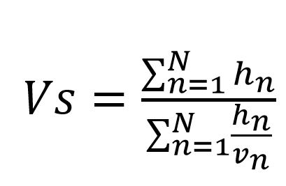 Una vez obtenido el modelo de velocidad de ondas sísmicas se prosiguió a la determinación de la velocidad promedio de la onda sísmica de corte (Vs), la cual se determina mediante la ecuación 1 del presente documento, basada en el artículo 25 del RNC-07.Dónde: Vs = Velocidad de la onda de corte promedio.