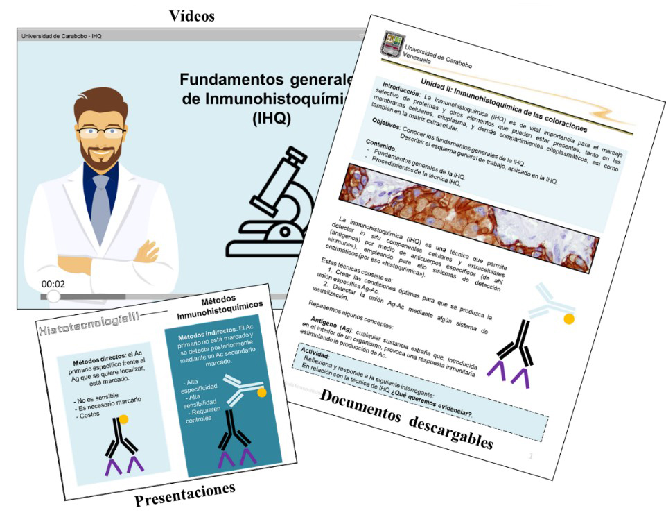 Fig. 2: Recursos diseñados ad hoc “Unidad II: Inmunohistoquímica de coloraciones”, disponibles en el aula virtual de la asignatura “Histotecnología III”