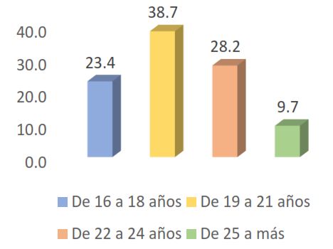 Como se puede observar en el gráfico No.2, el 39% de los encuestados oscilan en la edad de 19 a 21 años, seguidos por un 28 % de 22 a 24 años y un 23% de 16 a 18 años. Esto da entender que la mayoría de los receptores de remesas sobrepasan los 18 años; esto significa que en su mayoría según lo expresado por los encuestados es que se tiene mayor confianza a los jóvenes mayores de 18 años puesto que en algunas instituciones hasta este rango de edad son tomados en cuenta para realizar transacciones bancarias.
