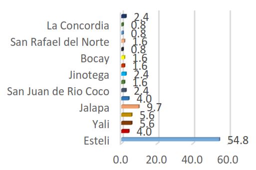 Más del 60% de los receptores de remesas se concentran en dos municipios: Estelí (54.8%) y Jalapa (9.7%) Debido a que la matrícula universitaria está en su mayoría representada por estudiantes procedentes de dichos municipios.