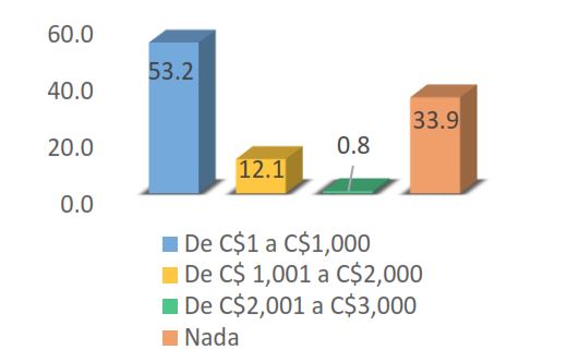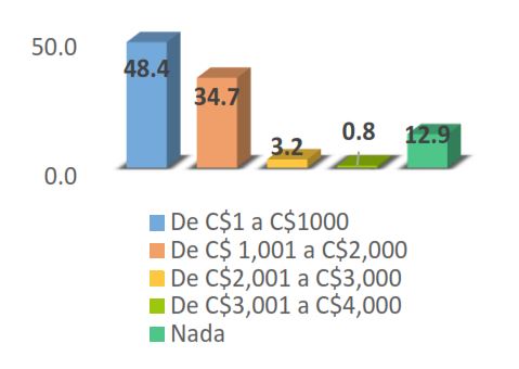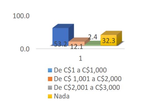 Los estudiantes encuestados confirmaron que las remesas son parte fundamental para su educación, un 53.2% de ellos afirmo invertir en educación entre C$ 1 a 1,000 córdobas, un 12.1% invierte entre C$1001 a 2,000 córdobas, un 0.8% invierte entre C$ 2,001 a 3,000 córdobas y por último un 33.9% afirmo no invertir en educación.