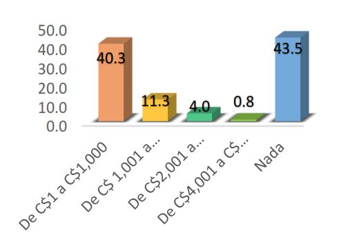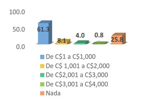 Los resultados de la encuesta reflejan que el 40.3% de los receptores de remesas destinan de C$1 a 1,000 córdobas al ahorro, un 11.3% destina de C$1,001 a 2000 córdobas, un 4% destina al ahorro C$ 2,001 a 3,000, un 0.8% destina de C$4,001 a 5,000 córdobas, frente a un 43.5% los cuales no destinan al ahorro.