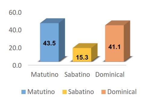 Más del 80% de los receptores de remesa se concentran en dos turnos: matutino (43.5%) y dominical (41.1%). Este puede ser resultado de que los estudiantes del turno sabatino son personas que trabajan y menos dependientes de familiares que envían remesas.