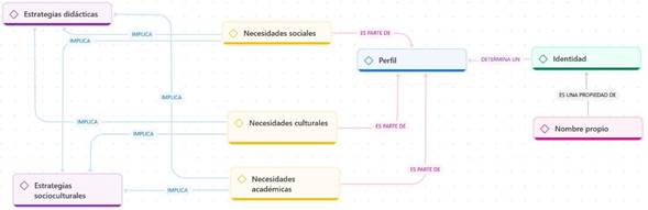 En consecuencia, los perfiles que dependen de una identidad específica generan necesidades sociales, académicas y culturales. Estas necesidades forman parte de las categorías identificadas en el trabajo de campo y, como se ilustra en la Figura 3, surgen a partir de un perfil particular que busca expresar una identidad. Las necesidades identificadas están intrínsecamente ligadas a la forma en que estos niños y niñas se reconocen y se relacionan dentro de su entorno social, más que a su herencia cultural original.