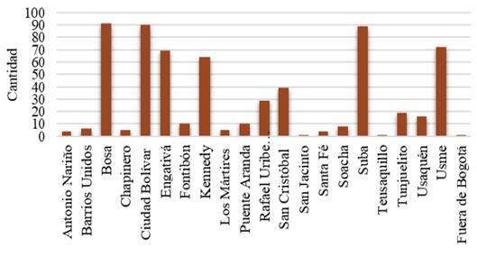 La distribución territorial de los beneficiarios del programa "Jóvenes a la U" en UNIMINUTO revela patrones significativos que merecen un análisis detallado. Los datos muestran una marcada concentración en localidades periféricas de Bogotá, donde Bosa (91 beneficiarios), Ciudad Bolívar (90), Suba (89) y Usme (72) emergen como las zonas con mayor participación, representando en conjunto cerca del 52% del total de beneficiarios (ver Figura 2). Esta concentración no es casual; estas localidades se caracterizan por albergar poblaciones en condiciones de vulnerabilidad socioeconómica y presentar las mayores brechas en el acceso a educación superior.