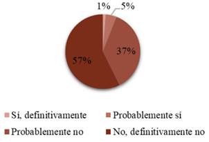 El potencial acceso a la educación superior sin el programa "Jóvenes a la U" revelan un panorama contundente y significativo. Los datos muestran que 363 estudiantes (57%) indicaron que "definitivamente no" habrían podido acceder a la educación superior sin el programa, mientras que 232 (37%) señalaron que "probablemente no" lo habrían logrado. En contraste, solo 30 estudiantes (5%) consideraron que "probablemente sí" habrían accedido y apenas 8 (1%) afirmaron que "definitivamente sí" lo habrían conseguido (ver Figura 5). Esta distribución de respuestas evidencia el papel crucial del programa en la democratización del acceso a la educación superior.