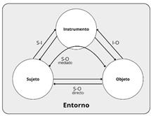 Para llevar a cabo las observaciones en el aula, se empleó el modelo SAI (Situaciones de Actividades Instrumentadas), que establece la relación entre el sujeto (estudiante), la tarea (con el objeto matemático) y el instrumento (RV) (ver Figura 1). Este modelo actúa como herramienta para el análisis de tareas, planteando que el instrumento es el mediador entre el sujeto y el objeto, lo que permite el acceso al conocimiento del objeto matemático.