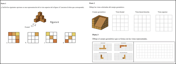 En la tercera sesión, se empleó un cuestionario similar al inicial, con 5 cuerpos geométricos y sus vistas (por ejemplo, ver Figura 9).