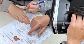 Se dispuso de dos gafas de RV sobre la mesa sin dar instrucciones de uso, los estudiantes indagaron por voluntad propia cómo funcionan, percatándose que una de las gafas no tenía un entorno virtual, por lo que se asoció que debían adecuarlo, más bien, se les dispuso de dos artefactos, solo uno adecuado para la tarea.