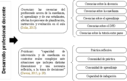 Nota. Elaboración propia a partir de la revisión de cuatro escalas que evalúan creencias y prácticas docentes sobre el desarrollo profesional docente.