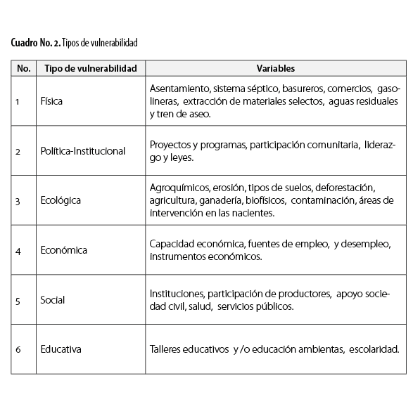 Palabras clave: Vulnerabilidad, alternativas, manejo, contaminación.