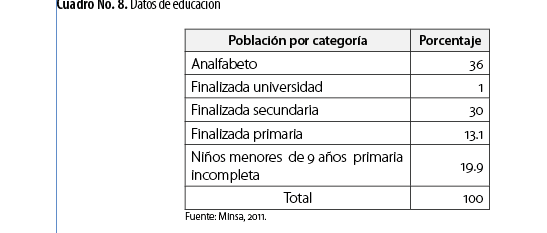 Se podría decir que la educación es el indicador social más importante para el manejo de la micro cuenca, esto conlleva conocimientos sobre la utilidad de la micro cuenca para la vida social y ambiental, en todo caso aunque se implementen medidas de regulación y control estas podrían no funcionar si no se integra la participación consciente de la población.