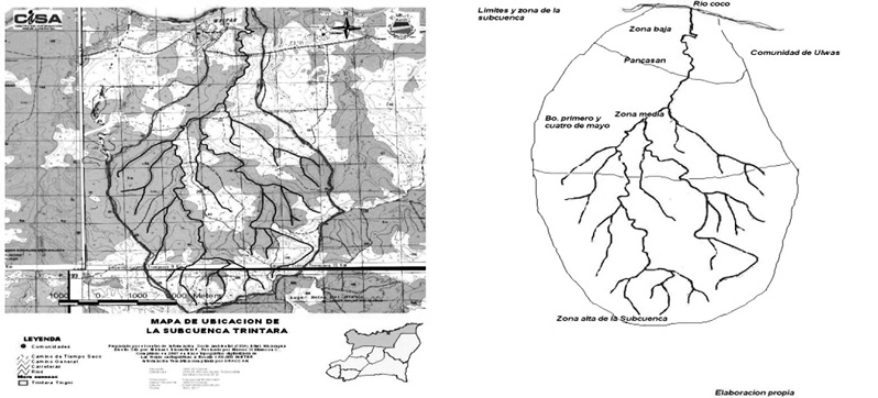 La micro-cuenca del río Trintara se encuentra ubicada en la Región Autónoma del Atlántico Norte (RAAN), cubre 3 barrios de Waspam y que sirve de lindero con la comunidad vecina de los ulwas. Se extiende de Sur a Norte con un área total de 4,646.23 Ha, desemboca sus aguas directamente en el río Coco, en el sector del barrio Santa Inés del segundo embarcadero a 500 metros al Este en el territorio de la comunidad de los ulwas.